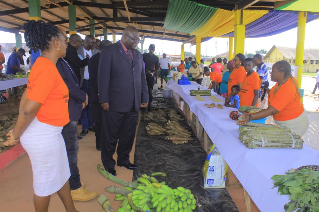 Au total, 16 coopératives ont pris part à cette foire, représentant les villages partenaires de Mboukou, Rembo, Ferra, Iroungou, Nanga, Nyanga-Youngou, et plusieurs coopératives sœurs de la commune de Mouila. Les exposantes ont présenté une grande diversité de produits vivriers locaux, agrumes et PFNL : bananes, manioc, asperges, feuilles de manioc, ananas, mangues, légumes-feuilles, curcuma, patates douces, citronniers, pamplemoussiers, etc.